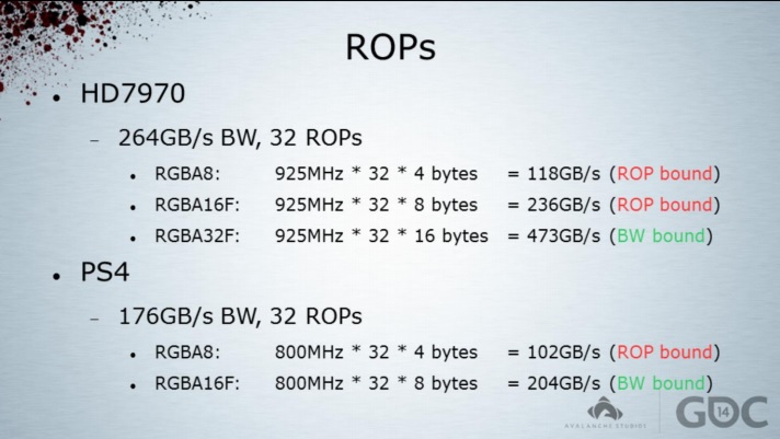 В случае с игровой консолью от Sony, дела обстоят мягче, чем с творением от Майкрософта. У PS4 немного неправильная конструкция ROP блоков из-за чего производительность упала, но если сравнивать с PS3, то данные блоки стали на голову выше своей старшей сестры.
